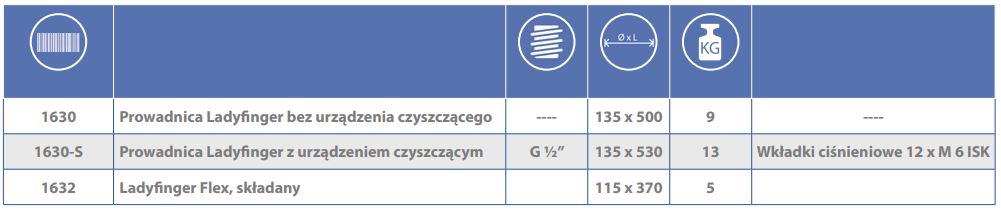 Ladyfinger to prowadnica węża wykonana ze stali nierdzewnej, służąca do czyszczenia węży. Umożliwia po skończonej pracy oczyszczenie węża  brudu, piasku, kamieni i tłuszczu przed nawinięciem na bęben. Urządzenie czyszczące dostępne jest jedynie z art. 1630-S.